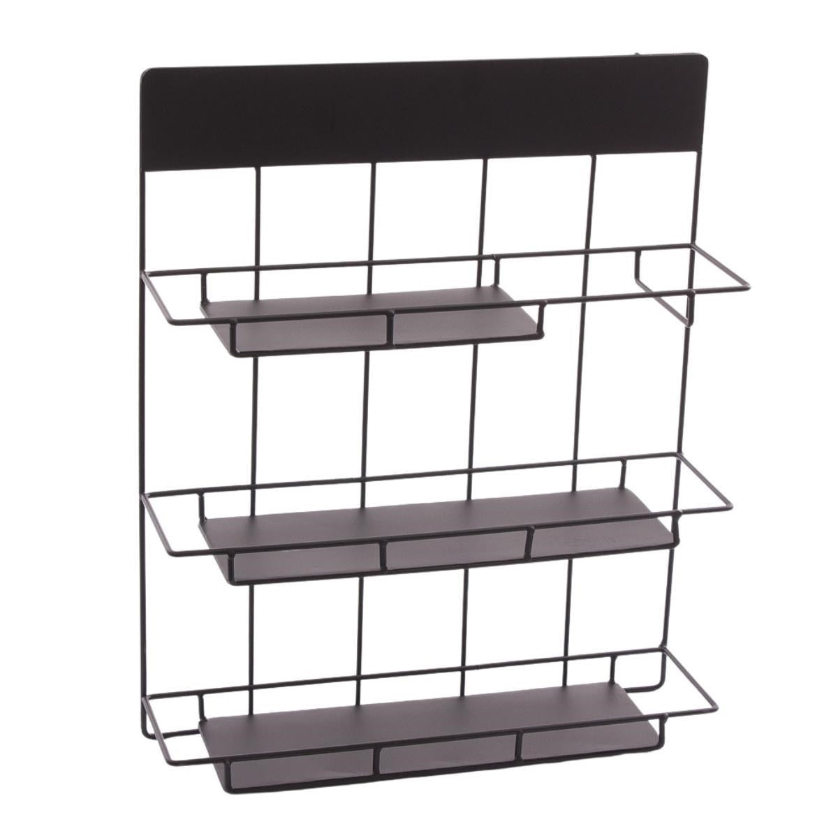 Mensola a Griglia da Parete in Metallo Nero con Portaoggetti